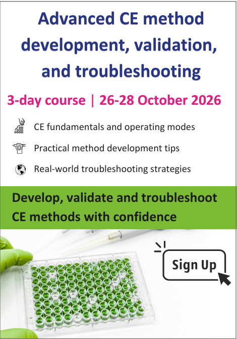 • Analytical Quality by Design (AQbD) • ICH Q14 and ICH Q2(R2) • Capillary Electrophoresis (CE) • Troubleshooting |